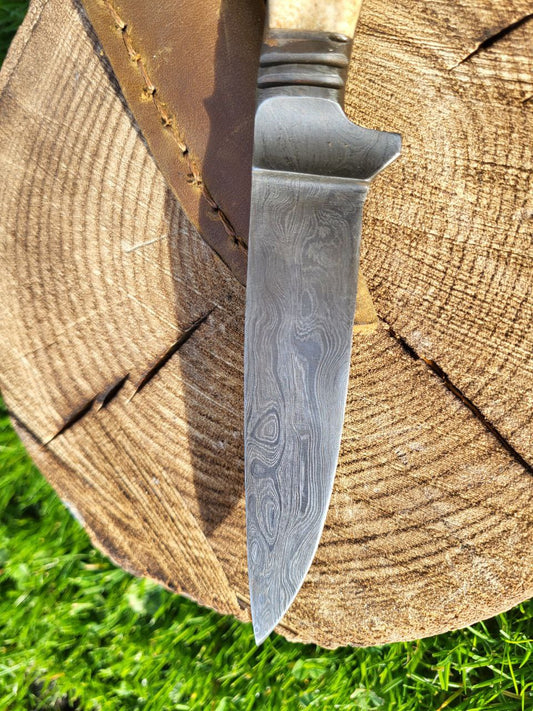 Jagdnicker aus Kupfer-Damast mit Geweihgriff