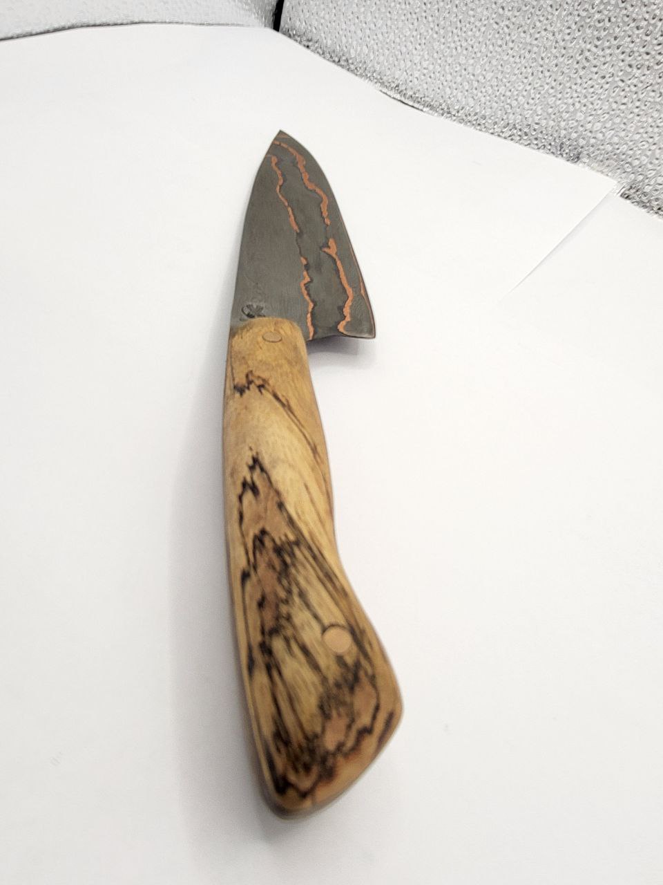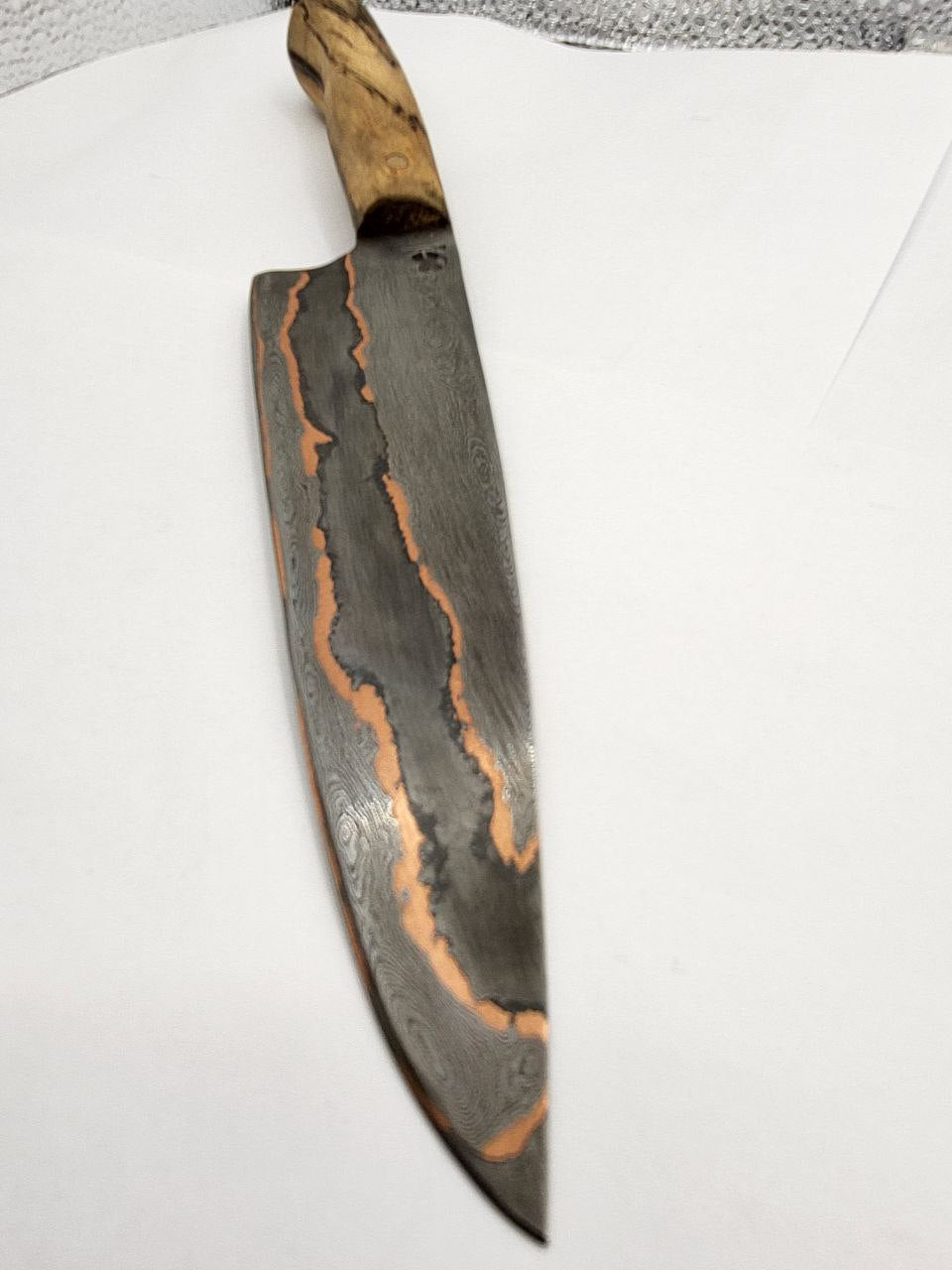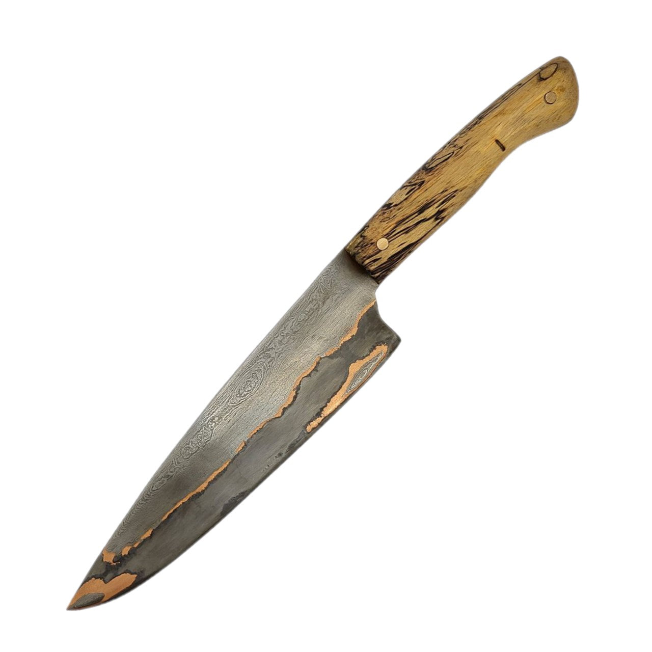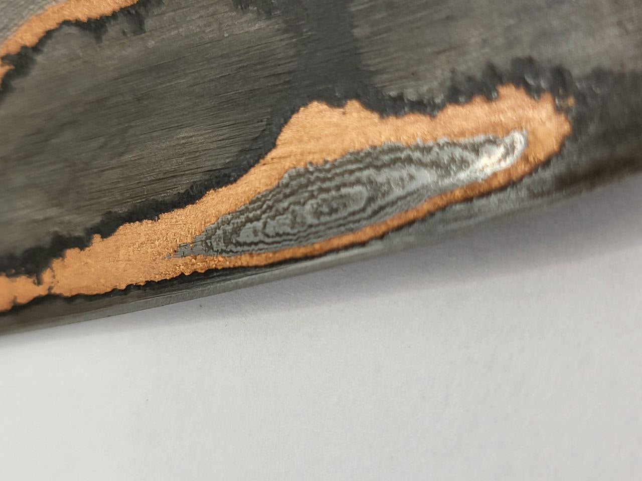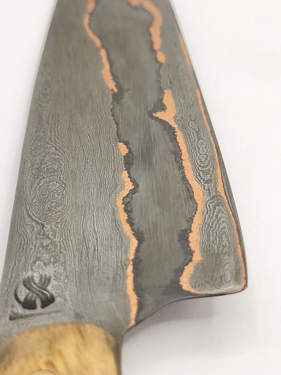 Die Klinge ist aus Kupfer und den Stählen 1.2842 und 1.5634 gefertigt und somit NICHT rostfrei! Reinigen Sie das Messer nach jedem Gebrauch unter fließenden Wasser ohne aggressiven Reinigungsmitteln. Trocknen Sie das Messer danach gründlich mit einem Tuch ab. Gegebenenfalls können Sie die Klinge auch etwas ölen.