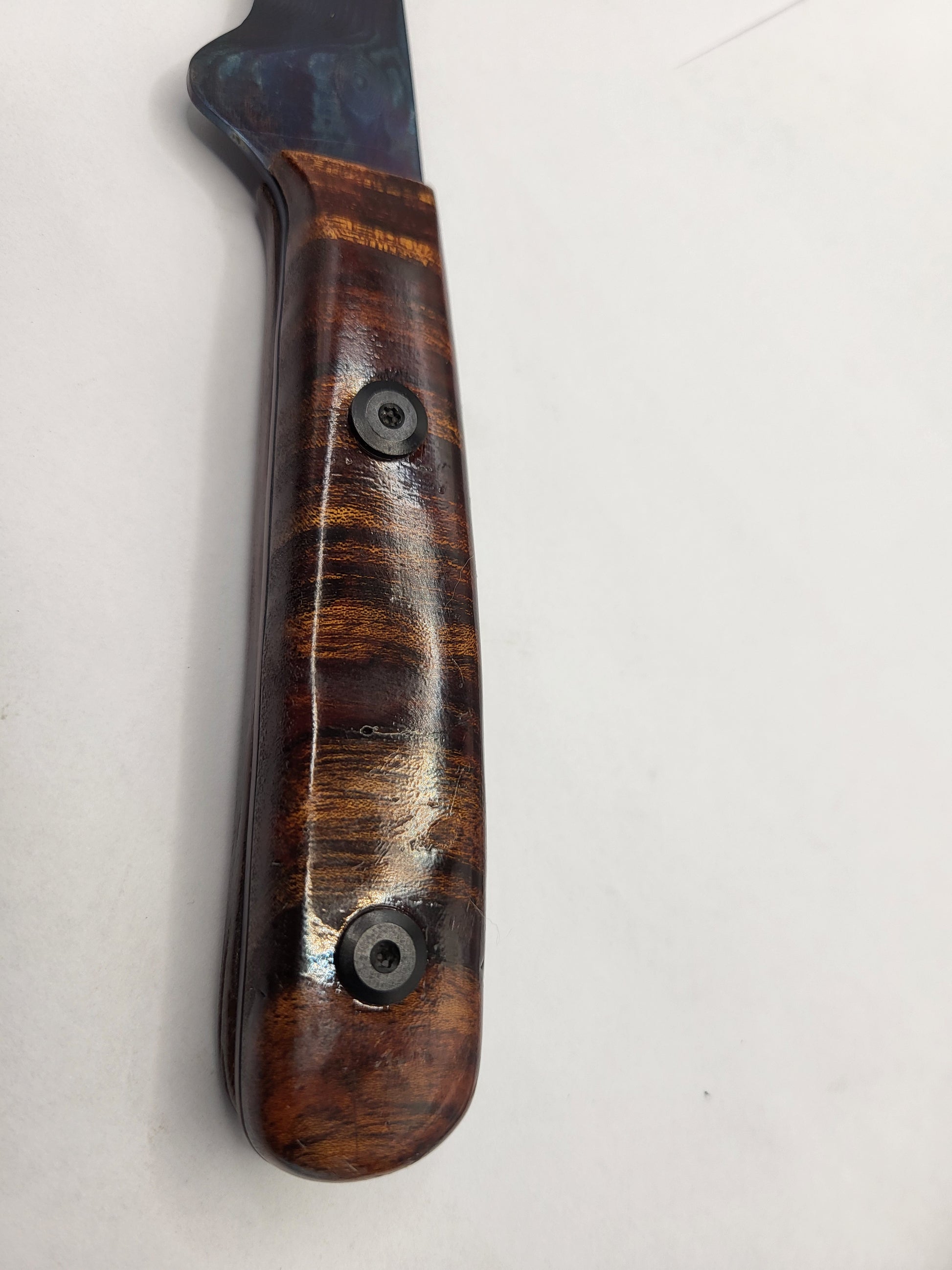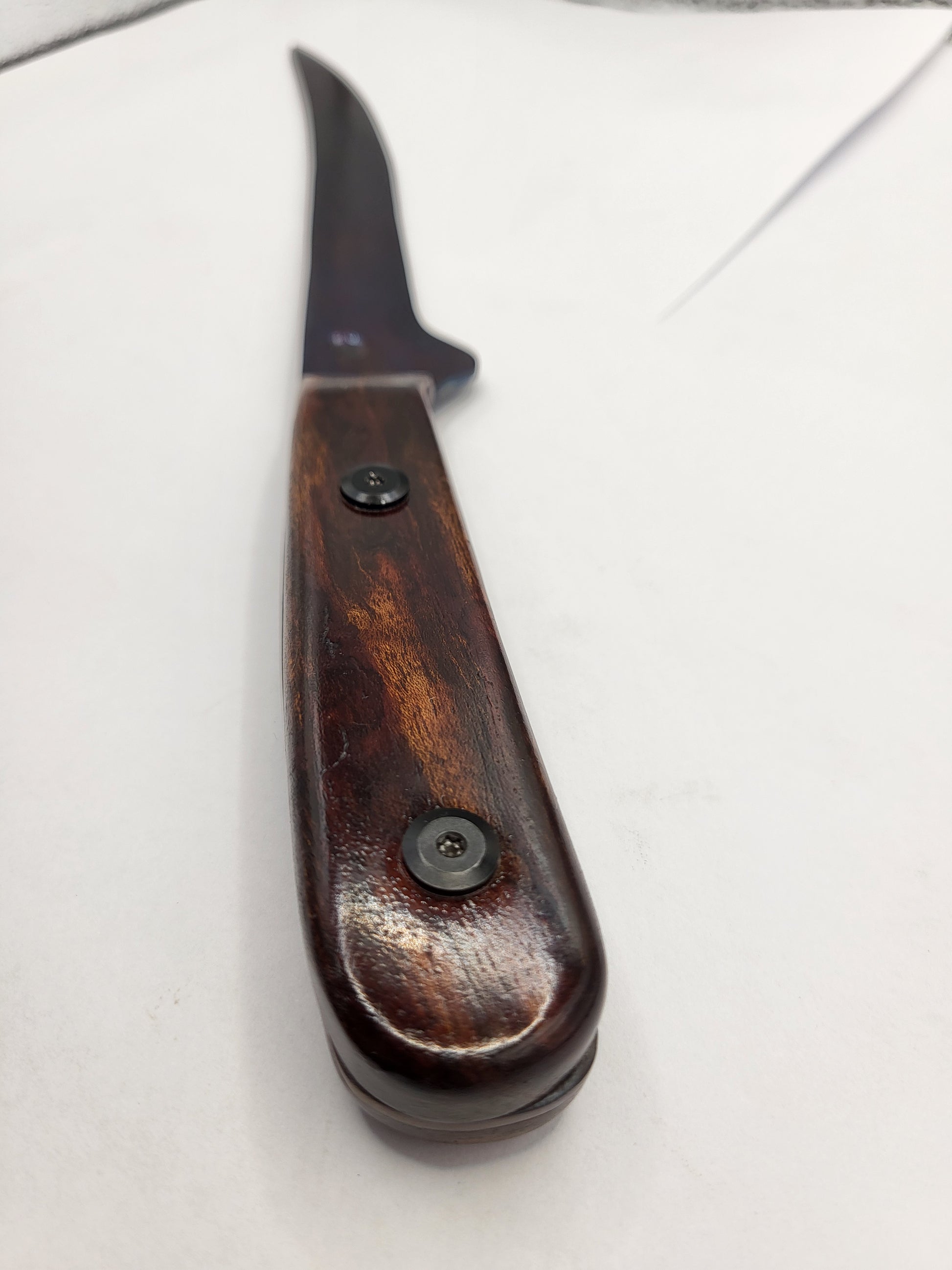 Dieses Filetiermesser überzeugt mit einer eleganten Klinge aus blau-violettem Damaszenerstahl, gefertigt aus 72 feinen Lagen für außergewöhnliche Schärfe und Flexibilität. Der verschraubte Griff aus beschichtetem Teakholz sorgt für sicheren Halt und eine angenehme Handhabung – perfekt für präzises und müheloses Filetieren. Ein Werkzeug, das Qualität und Stil in Ihre Küche bringt. Da der Griff lediglich verschraubt und nicht verklebt ist, kann das Messer nicht nur komplett zerlegt und gereinigt werden sondern auch der Griff mühelos getauscht werden.