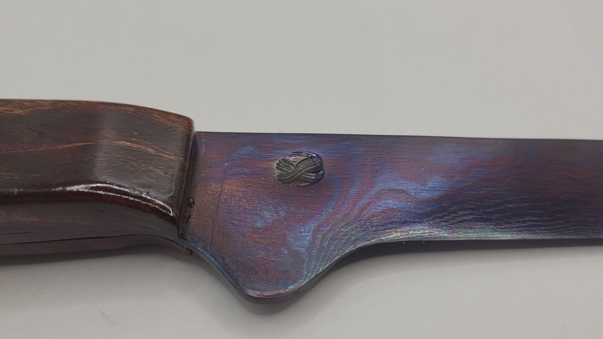 Die Klinge ist aus den Stählen 1.2842 und 1.5634 gefertigt und somit NICHT 100% rostfrei!